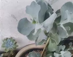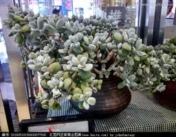 叶子表面宽厚,富肉质感且带有磨纱质感,看像石头质地;开红色小花,生于植株顶部,倒伞形密生,形状像花…