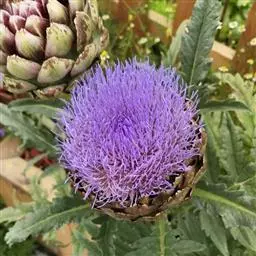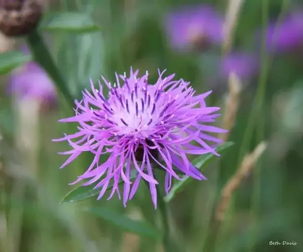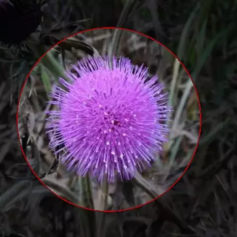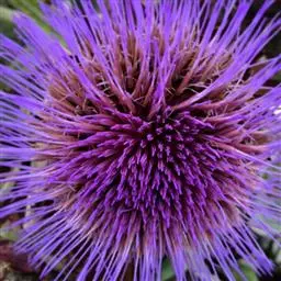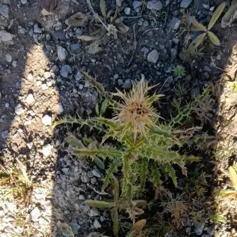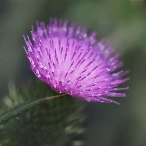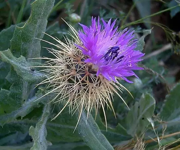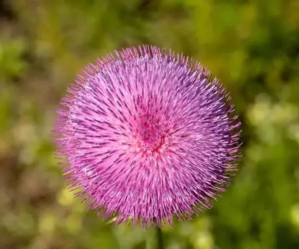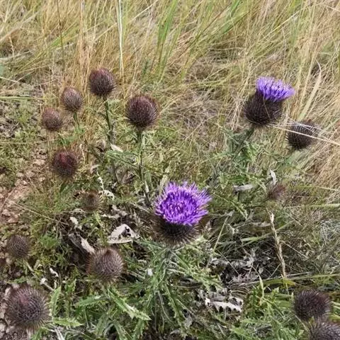 两年生植物。首年长出簇叶,次年开花,高1~2.5米。叶有深裂口而多刺,长15~25厘米 (花附近的叶子较短)。花序直径2.5~5厘米,粉紫色,小花形式单一,只有管状花,没有舌状花。种子有冠毛,藉以随风传播。