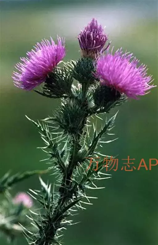 魁蓟菊科蓟属植物,多年生草本,高达1米,茎枝被长毛,基部和下部茎生叶长椭圆形或倒披针状长椭圆形,…