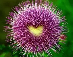头状花序直立,多数或少数在茎枝顶端排成圆锥状伞房 花序或总状花序。总苞卵球形,直径3-5厘米,无毛。总苞片约10层,紧密覆瓦状排列,钻状三角形、钻状披针形、钻状披针形至线钻形,长8-30毫米,钻状部分长5-9毫米,顶端渐尖成针刺;最内层线形,长3.4厘米,线形,顶端渐尖。小花红色,花冠长3厘米,细管部长2厘米,细丝状,檐部长1厘米,不等5浅裂。