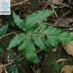 小型土生植物。 植株高10-20厘米。根状茎长,横走,纤细,粗2-3毫米,密被鳞片;鳞片披针形,长约3毫米,先端纤维状,边缘有疏睫毛,膜质,褐棕色并稍有光泽。叶疏生,相距5-10毫米;不育叶叶柄长3-5厘米,纤细,基部粗仅约1,5毫米,暗禾秆色,上面有浅沟,基部密被鳞片,向上部密被有关节的开展的淡棕色长毛;能育叶叶柄长10-18厘米,下部疏被鳞片,向上几光滑无毛;叶二型;不育叶三角椭圆形,长6-9厘米,基部宽2.5-3.5厘米,先端钝圆,基部戟状并为心形,两侧边缘有波状的圆裂片,或为浅波状至近全缘,通常基部有一对分离的羽片,羽片对生,平展,有短柄,三角形,长1-2.5厘米,基部宽1-2厘米,先端钝圆,基部圆截形至浅心形,基部两侧有钝圆的耳状裂片,边缘浅波状至近全缘;能育叶强度缩狭,羽片三叉,顶生羽片线形,长5-7厘米,基部宽2-3毫米,柄长约1厘米,先端钝,基部楔形,上部边缘浅波状,下部羽状浅裂形成几对远离的钝圆裂片,侧生羽片对生,斜向上,有短柄,线形,长1-2厘米,宽2-3毫米,先端钝,基部下侧有一较短的分叉,边缘浅波状。叶脉联结成近六角形网眼,有分叉或单一的内藏小脉或无内藏小脉,两面均不明显;羽轴及侧脉暗禾秆色,上面光滑,下面密被有关节的淡棕色长毛。叶纸质,干后褐色,上面疏被早落的有关节的淡棕色毛,下面几光滑,叶缘密被有关节的淡棕色长睫毛。孢子囊汇合成线形,成熟时满布于能育叶下面,无囊群盖。
