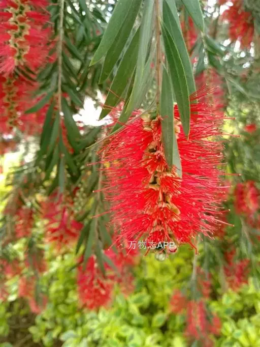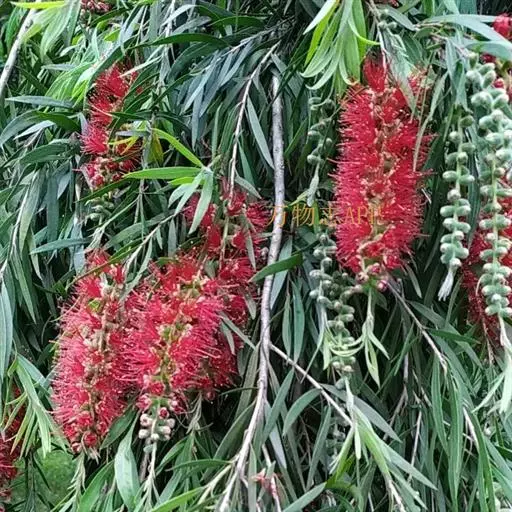 柳叶红千层(Callistemon salignus DC.)为常绿乔木,嫩枝圆柱形,有丝状柔毛。叶片革质,线状披针形,长6-7.5厘米。穗状花序稠密,长达11.5厘米,花序轴有丝毛。蒴果碗状或半球形,直径比垂枝红千层短约5毫米,顶端截平而略为收缩。 垂枝红千层