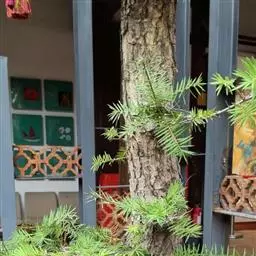 高可达8米,树干挺直,树形呈狭圆柱形,小枝扭曲上伸,故而得名。小枝密集,叶密生,全为鳞叶,幼叶淡黄绿色,老后为翠绿色。球果蓝绿色,果面略具白粉。龙柏树形除自然生长成圆锥形外,也有的将其攀揉盘扎成龙、马、狮、象等动物形象,也有的修剪成圆球形、鼓形、半球形,单值或列杆、群植于庭园,更有的栽址成绿篱,经整形修剪成平直的圆脊形,可表现其低矮、丰满、细致、精细。龙柏侧枝扭曲螺旋状抱干而生,别具一格,观赏价值很高,中国各地广为栽培。