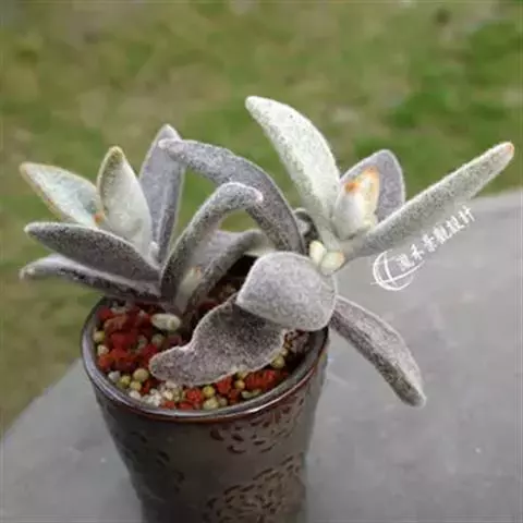 褐斑伽蓝是景天科、伽蓝菜属多年生肉质草本植物或小灌木。全株灰白色,密布白色茸毛。叶片长卵形,…