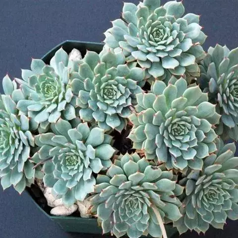 薄叶蓝鸟 叶片蓝绿色,叶尖红色,带粉,花型紧凑,非常漂亮。原产于墨西哥,现世界各地均有栽培。