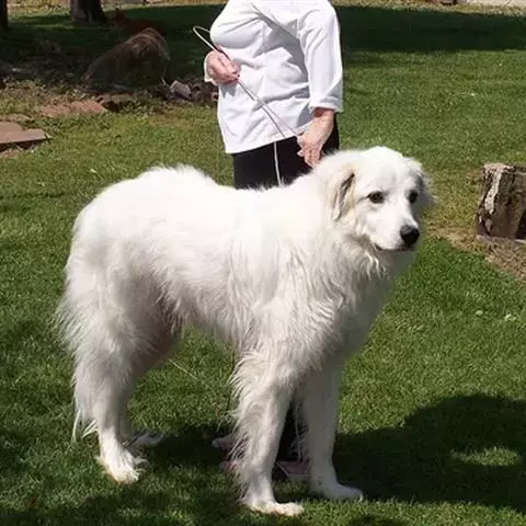 【整体外貌】这种犬是大型的工作犬。身体结实,体态平衡。被毛为纯白色,没有斑块。骨骼肌肉发达,却丝毫不显得笨重。这种犬的强健有力给人留下深刻印象,行动充满活力,步态很轻快。