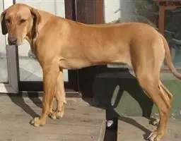 【后躯】相当长。上肢宽而长,肌肉十分发达。股骨长,膝关节屈曲。下肢长,皮肤紧,肌肉发达。后脚跟短而宽,非常有力。狼爪应去除。后脚与前脚类似,但比前脚稍长。