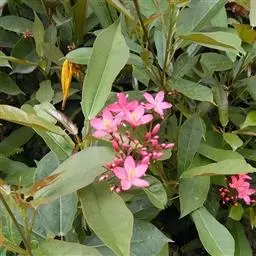变叶珊瑚花,是大戟科麻风树属常绿灌木。变叶珊瑚花单叶互生,倒阔披针形,叶面为浓绿色,叶背为紫绿色,…