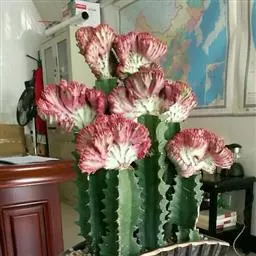 魁伟玉原产南非,是一种大戟科的多年生肉质植物,植株具粗圆筒形肉质茎,有10条以上的突出棱,…
