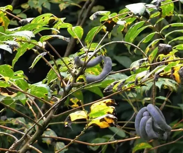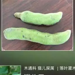 猫儿屎(Decaisnea insignis (Griff.) Hook. f. et Thoms.),别名猫屎瓜、矮杞树等。直立灌木,高5米。茎有圆形或椭圆形的皮孔;枝粗而脆,易断。羽状复叶长50-80厘米;叶柄长10-20厘米;小叶膜质,卵形至卵状长圆形。总状花序腋生,或数个再复合为疏松、下垂顶生的圆锥花序;小苞片狭线形。花丝合生呈细长管状,花药离生。雌花:退化雄蕊花丝短,合生呈盘状;心皮3,圆锥形,柱头稍大,马蹄形,偏斜。果下垂,圆柱形,蓝色,顶端截平但腹缝先端延伸为圆锥形凸头,具小疣凸,果皮表面有环状缢纹或无;种子倒卵形,黑色,扁平,长约1厘米。花期4-6月,果期7-8月。