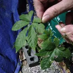 猫儿屎修剪能极显著地提高先年母茎的粗度和材积,提高当年木通药材产量和质量。结合新梢引上搭架第一道铁丝、绑在第二道铁丝和剪掉超过第二道铁丝相互缠绕结团的小茎等田间管理工作进行。5月中旬,每条先年母茎选留2-3个新梢,第4-8束幼叶时摘掉新梢茎尖,称为4/4修剪或2/8修剪。5月中、下旬间隔5天左右修剪1次。