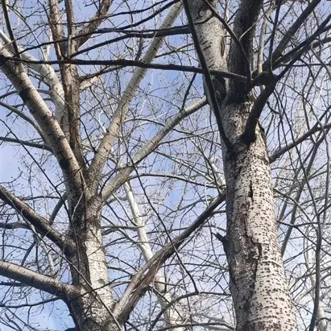 黑杨,为乔木,高30米;树冠阔椭圆形。树皮暗灰色,老时沟裂。小枝圆形,淡黄色,无毛。芽长卵形,富粘质,…