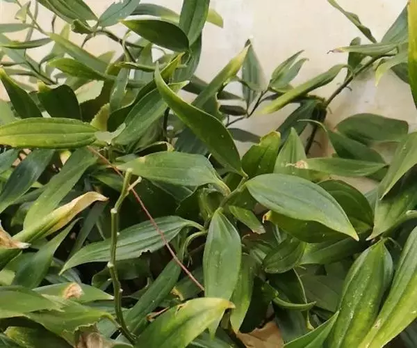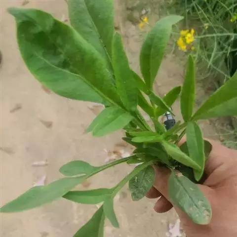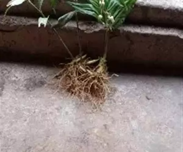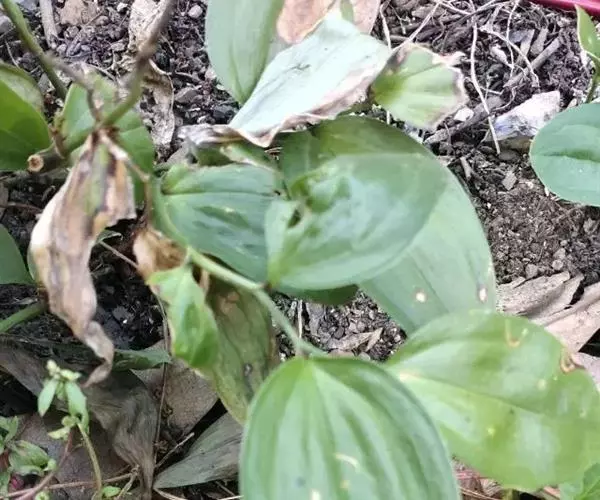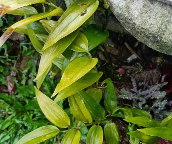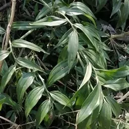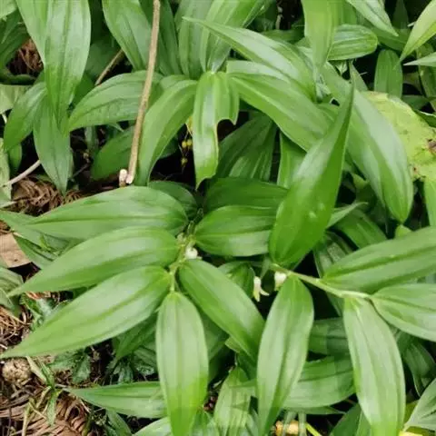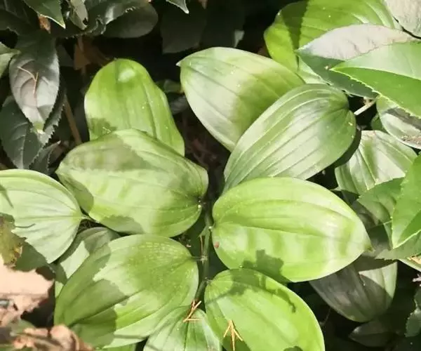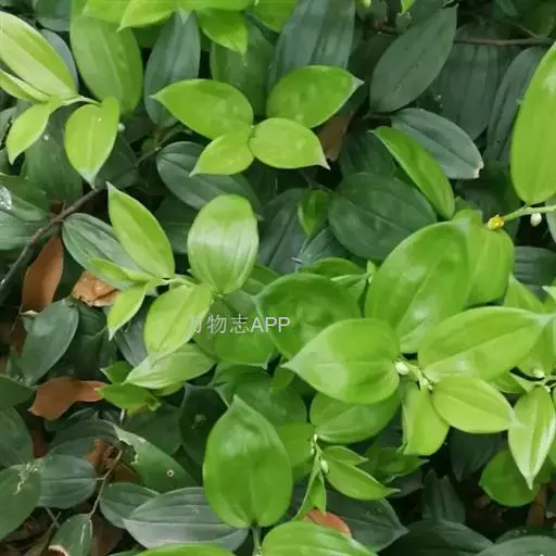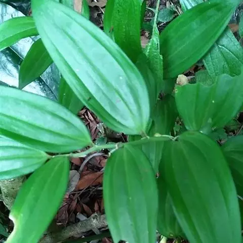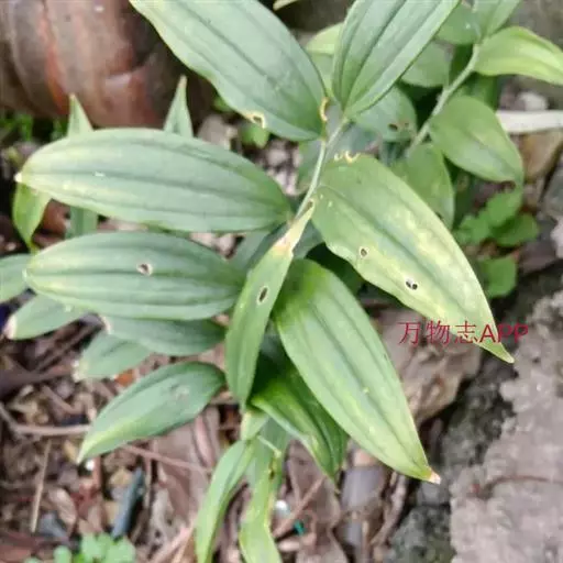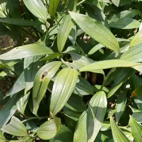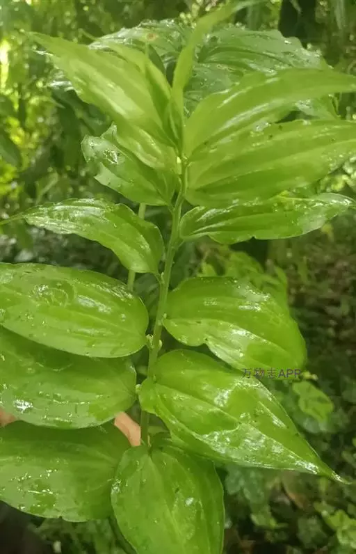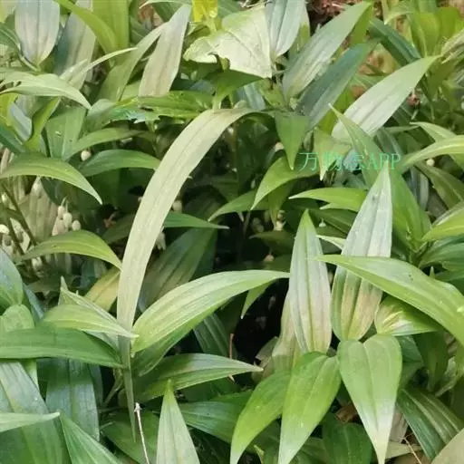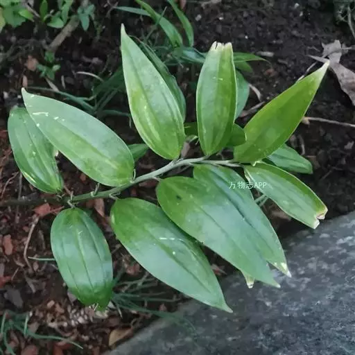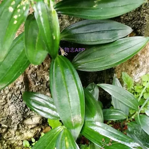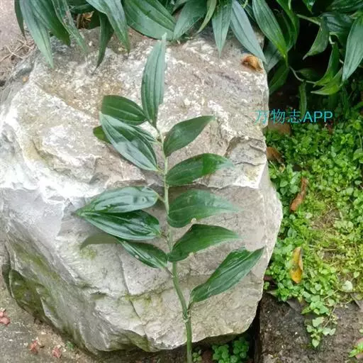 竹根七又名:假万寿竹。根状茎连珠状,粗1-1.5厘米。茎高25-50厘米。叶纸质,卵形、椭圆形或矩圆状披针形,长4-9(-15)厘米,宽2.3-4.5厘米,先端渐尖,基部钝、宽楔形或稍心形,具柄,两面无毛。花1-2朵生于叶腋,白色,内带紫色,稍俯垂;花梗长7-14毫米;花被钟形,长15-22毫米;花被筒长约为花被的2/5,口部不缢缩,裂片近矩圆形;副花冠裂片膜质,与花被裂片互生,卵状披针形,长约5毫米,先端通常2-3齿或二浅裂;花药长约2毫米,背部以极短花丝着生于副花冠两个裂片之间的凹缺处;雌蕊长8-9毫米;花柱与子房近等长。浆果近球形,直径7-14毫米,具2-8颗种子。花期4-5月,果期11月。