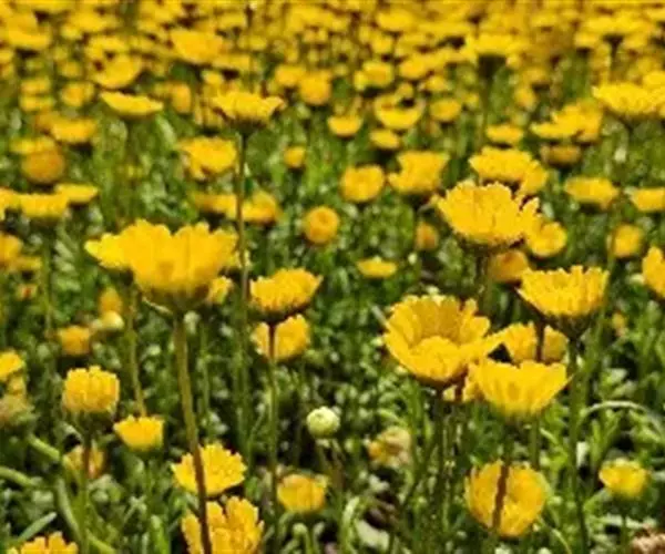 黄晶菊是二年生草本花卉,耐寒性强,开花早,花期长,花繁色艳,极具观赏性。叶色葱绿,头状花序顶生,盘状,中央筒状花聚成花心,外围舌状花扁平。成片栽培的黄晶菊,繁花遮叶,与同属异种的姊妹花白晶菊混植或组合盆栽,白黄点缀竞相开放,具有很高的观赏价值。黄晶菊适于露地花坛、花境种植,作镶边或色块构图效果良好;亦可盆栽,装点庭院、美化居室,是早春用于观赏和环境美化不可多得的优良花卉。