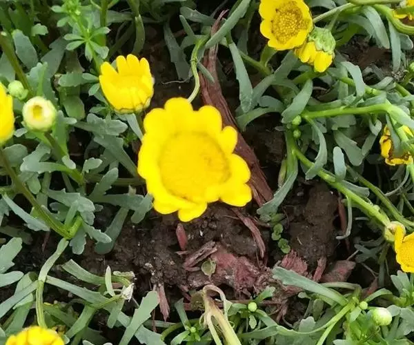 金玉菊又名白金菊,原产非洲南部,为菊科千里光属多年生常绿草本植物。植株匍匐或攀援向上生长,茎圆,红…