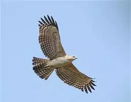 靴隼雕:是鸟纲、鹰科的中型鹰类。全长约40-53厘米,头、颈白色沾棕,纵贯以暗褐色轴纹,眉纹黑色。…