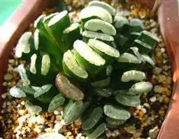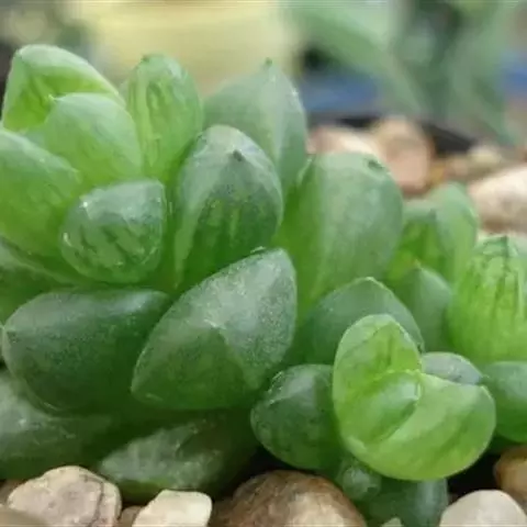 草玉露(Haworthia cymbiformis var. obtusa (Haw.) Baker):叶小而圆,易群生。
