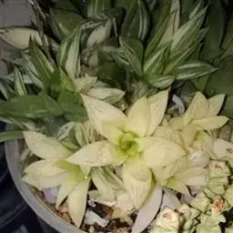 京之华锦是独尾草科瓦苇属的一种植物。也叫凝脂菊,为京之华的斑锦变异品种,植株群生,…