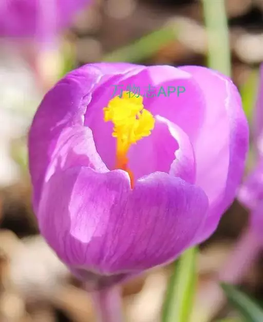 多年生草本。鳞茎偏圆锥形,直径约2-3cm,外被淡黄至棕褐色皮膜,内有肉质鳞片2-5片。茎叶光滑,被白粉。叶3-5枚,带状披针形至卵状披针形,全缘并成波形,常有毛,其中2-3枚宽广而基生。花单生茎顶,大型,直立杯状,洋红色,鲜黄至紫红色,基部具有墨紫斑,花被片6枚,离生,倒卵状长圆形,花期3-5月。蒴果室背开裂,种子扁平。
