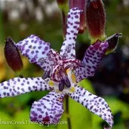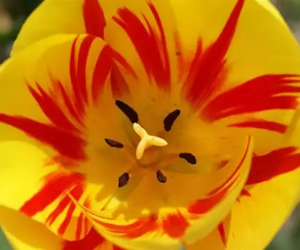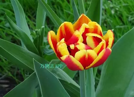 叶3-5枚,条状披针形至卵状披针状,花单朵顶生,大型而艳丽,花被片红色或杂有白色和黄色,有时为白色或黄色,长5-7厘米,宽2-4厘米,6枚雄蕊等长,花丝无毛,无花柱,柱头增大呈鸡冠状,花期4-5月。