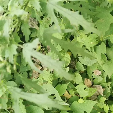 受害症状:该病多发生与枝条中下部的叶片上,发病初期,叶背产生白粉状圆形霉斑,在霉斑相应的叶面,出现淡褐色的斑块。病害严重时,霉斑扩大连接成片,白色粉末布满叶背。
