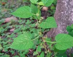小乔木或灌木,树皮灰褐色,纵裂;小枝暗红色,老枝灰黑色;冬芽卵圆形,灰褐色。叶长椭圆状卵形,长8-15厘米,宽5-8厘米,先端尾尖,基部心形,边缘具三角形单锯齿,稀为重锯齿,齿尖有长刺芒,两面无毛;叶柄长2. 5-3.5厘米。雄花序长3厘米,雄花花被暗黄色,外面及边缘被长柔毛,花药2室,纵裂;雌花序短圆柱状,长1-1.5厘米,总花梗纤细,长1-1.5厘米。雌花花被片外面上部疏被柔毛,或近无毛;花柱长,柱头2裂,内面密生乳头状突起。聚花果长1.5厘米,成熟时红色至紫黑色。花期3-4月,果期4-5月。