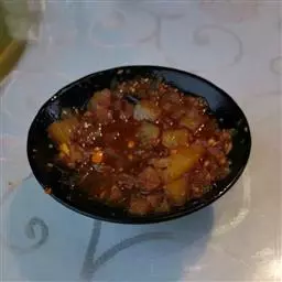2、将酱油、花椒粉、豆豉(用刀按成酱)、熟油辣椒、味精、葱(洗清切细末)在碗内调好,分别放入各小碟内。吃时,将豆花盛入碗中,调料每人1碟,拈豆花蘸碟子里的调料食用。