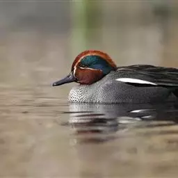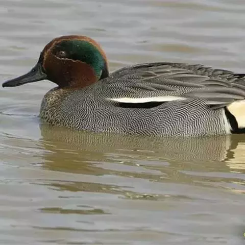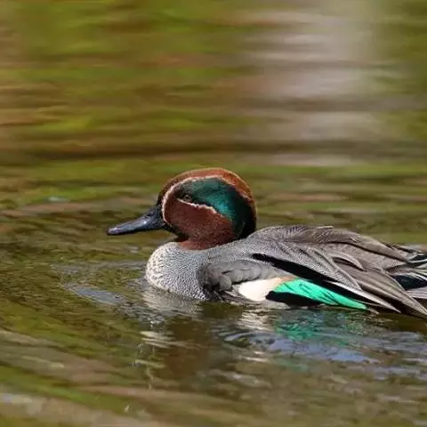绿翅鸭是小型鸭类,体长37厘米,体重约0.5千克。嘴脚均为黑色。雄鸟头至颈部深栗色,…