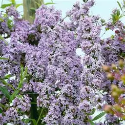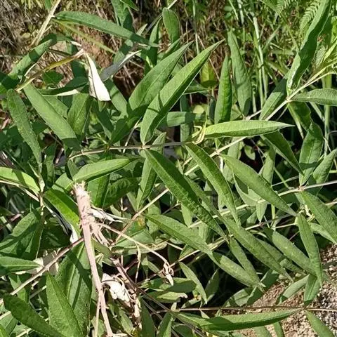 灌木,高1-3米。枝条圆柱形或近圆柱形;小枝、叶柄、花序、花萼外面和花冠外面均在幼时被星状毛和腺毛,后变无毛。叶对生,叶片纸质,披针形、长圆状披针形或长椭圆形,长7-25厘米,宽1.5-5厘米,顶端渐尖或长渐尖,基部楔形或圆,边缘具重锯齿,上面深绿色,近无毛,下面被灰白色或淡黄色星状短绒毛;侧脉每边10-17条,上面扁平,干后微凹,下面略凸起;叶柄长2-15毫米。圆锥状聚伞花序顶生,长7-25厘米,宽2-5厘米;花梗短,被长硬毛;花萼钟状,长3-3.5毫米,内面无毛,花萼管长约2毫米,花萼裂片三角形,长1-1.5毫米;花冠淡紫色,后变白色,喉部橙黄色,芳香,长6.5-8毫米,内面仅在花冠管内壁中部以上或喉部被长髯毛,花冠管长约5毫米,花冠裂片近圆形,长1- 1.5毫米;雄蕊着生于花冠管喉部,花丝极短,花药长圆形,长0.6-1.3毫米,基部心形;子房卵形,长1-1.5毫米,无毛,花柱长1-1.5毫米,无毛,柱头棍棒状,长0.7-1毫米。蒴果长圆状,长5-8毫米,直径2-3毫米,无毛;种子褐色,条状梭形,两端具长翅。花期2-9月,果期8-12月。