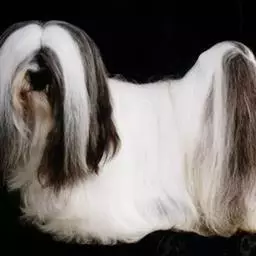 拉萨犬是食肉目犬科犬属哺乳动物。头盖狭窄,黑色的鼻子及丰厚的长毛;两颊胡须及颚部胡须很长;厚实的耳朵下垂;眼古铜色,大小中等,椭圆状;身长比身高长,背部水平,腰部强健;被毛上毛长粗且直,下毛丰厚;沿着背骨,被毛左右清楚分开;四肢以足部由密集丰厚的长毛覆盖着;前肢直,后肢肌肉十分发达;足部坚挺呈圆形,肉趾特别厚;尾毛密集,尾跟高,尾巴朝上卷曲,毛尖容易纠结在一起。寿命为12-14年。拉萨犬原产于中国西藏,现广泛分布于世界各地。吃苦耐劳、个性独立友善、聪明自信、活泼热情、忠心耿耿且沉着冷静,但对陌生人有高度的警觉性。适合饲养在家庭中。不易训练。饲养管理上,需定时修剪会进入眼睛的毛;被毛需要经常擦拭和彻底梳理,以免显得脏污蓬乱。拉萨犬是西藏地区四大名犬之一。1934年,拉萨犬被认定为独立品种。据说饲养此犬者可以增福和驱魔,以前又称“驱魔圣犬”,现在则是非常理想的家庭犬。