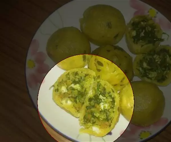 以上料先蒸30分锺凉後加进粘米粉50克,生粉50克,吉士粉25克,熟芝麻50克,糯米粉250克,蛋2个,金黄色素少许,以70克面糊为一个放进平底锅煎至双面金黄色用微火煎。