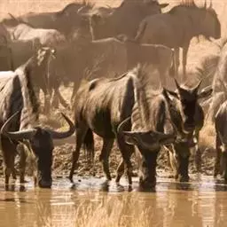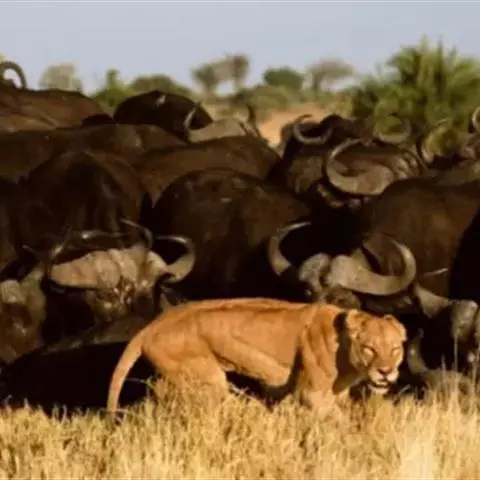 非洲野水牛:共有5个亚种。头体长2.1-3.4米,身高1-1.7米,体重300-900千克。胸膛宽…