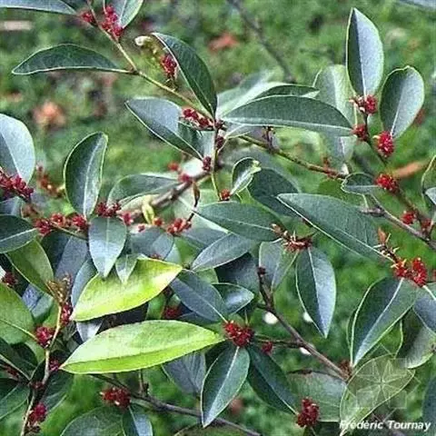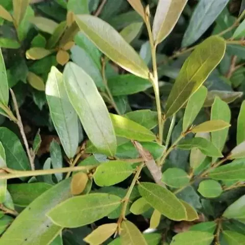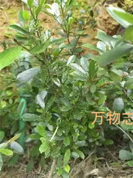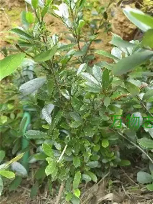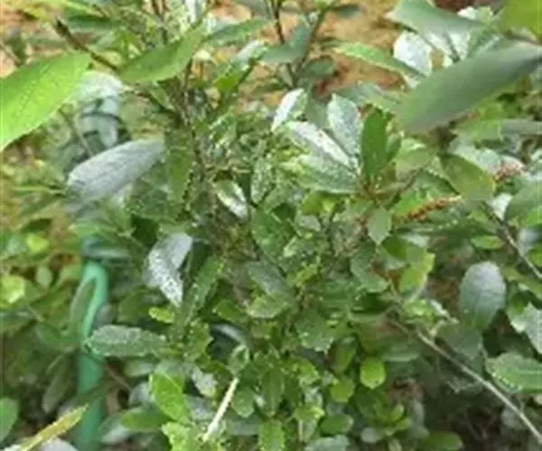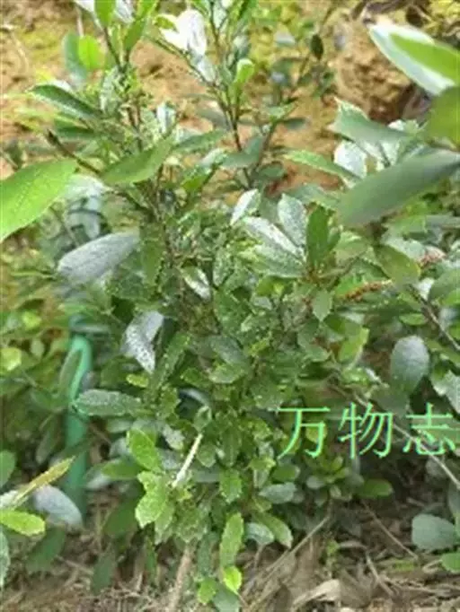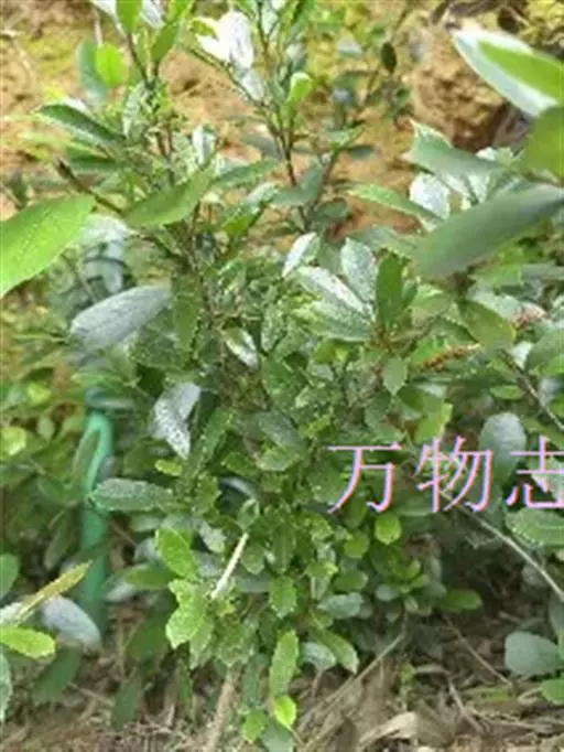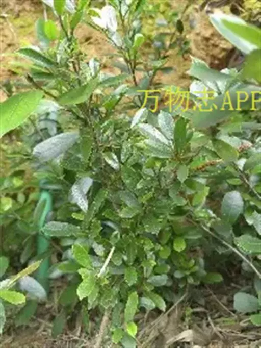 常绿灌木,高约1米;嫩枝粗壮,节间长2-4毫米,被褐色柔毛,老枝暗褐色,秃净无毛;芽体裸露、有柔毛。叶革质,矩圆形,长2-4厘米,宽约1厘米,先端略尖,基部阔楔形,上面绿色,稍发亮,下面秃净无毛;侧脉5对,在上面不明显,在下面隐约可见,网脉在上下两面均不明显;边缘在靠近先端处有2-3个小锯齿;叶柄长2毫米,略有柔毛;托叶披针形,早落。