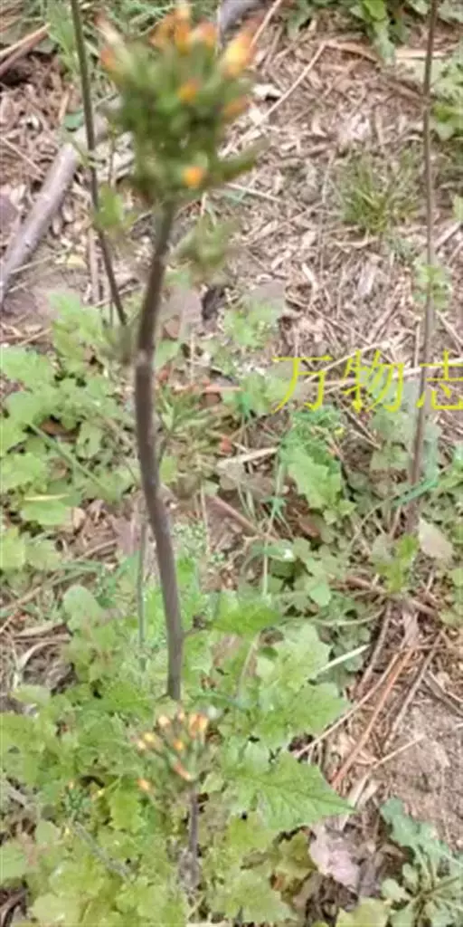 多年生草木。根肉质,多数。茎单生,稀2,直立,高10-30厘米,紫红色,上部被紫色有节柔毛,下部光滑,基部直径2-3毫米,不被枯叶柄纤维包围。丛生叶和茎基部叶具柄,柄长6-12厘米,被紫色有节柔毛,基部鞘状,叶片肾形,长0.7-2.5厘米,宽1-5厘米,边缘具浅圆齿,齿端有骨质小尖头,或浅裂,裂片7-12,齿间或裂片间有紫色有节柔毛,两面光滑,下面紫色,有时被有节柔毛,叶脉掌状,于两面均突起,常呈白色;茎中部叶具短柄,柄基部呈鞘状,叶片肾形,较小;上部叶卵形或披针形,无鞘,边缘具尖齿。头状花序单生,盘状,下垂,总苞钟形,长1.5-2.8厘米,宽1.5-4.5厘米,总苞片10-14,2层,淡紫红色至紫红色,花瓣状,倒卵状长圆形或宽椭圆形,宽0.7-2厘米,先端圆形,近全缘,有睫毛,稀为披针形,较窄,先端急尖,背部被黑紫色有节柔毛,或仅基部有毛,背部光滑,质薄近膜质,有明显脉纹。小花多数,全部管状,连同瘦果长为总苞的1/2至2/3,花冠紫红色,长6-8毫米,管部长约2毫米,花柱细长,远出于花冠之外,分枝短,被黑紫色乳突,冠毛白色与花冠等长。瘦果倒卵形,长2-4 毫米,略扁平,顶端平截,有浅的齿冠。花果期5-9月。