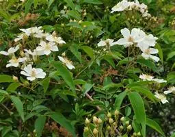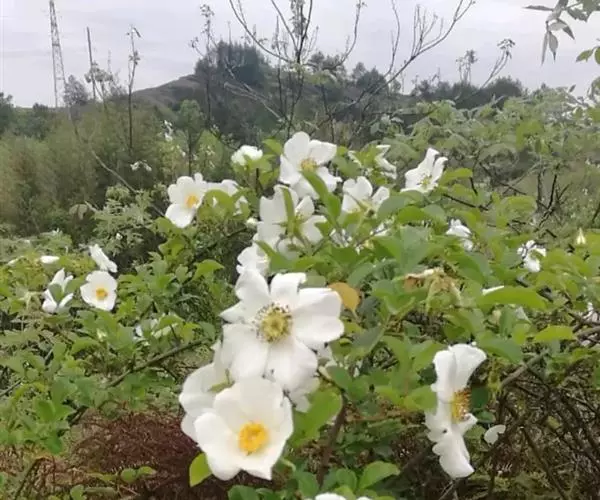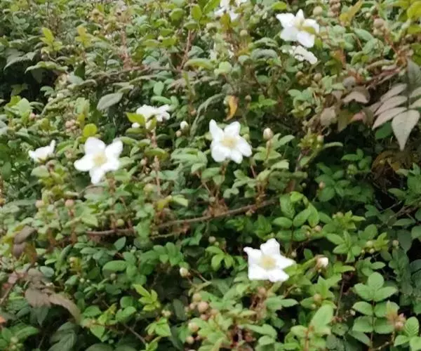 白蔷薇:直立灌木,高约2米;小枝有不等钩状皮刺,有时混有刺毛。小叶通常5,稀7,宽椭圆形或卵形,…