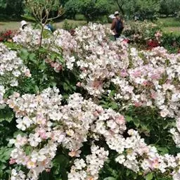 修剪:每季开完一期花后必须进行全面修剪。一般宜轻度修剪,及时剪去开放的残花和细弱、交叉、重叠的枝条,留粗壮、年轻枝条从基部起只留3-6厘米,留外侧芽,修剪成自然开心形,使株形美观,延长花期。另外,盆栽蔷薇花要选矮生多花且香气浓郁的品种。