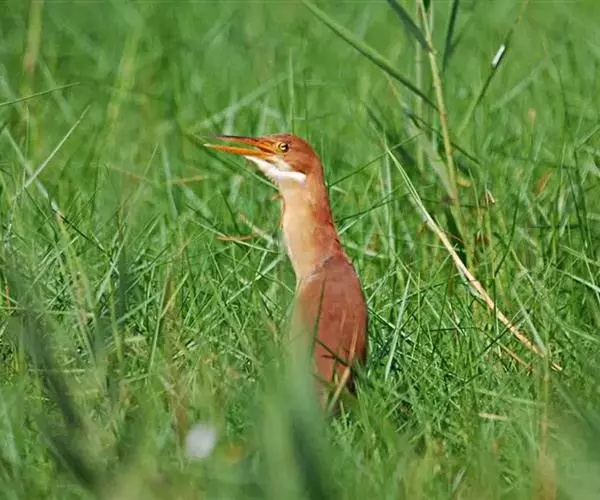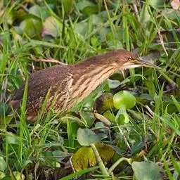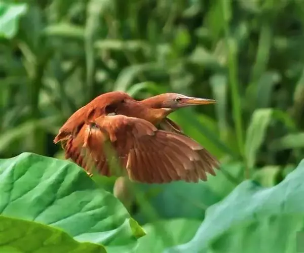 栗苇鳽(学名:Ixobrychus cinnamomeus)是一种中型涉禽。体长30-38厘米。外形和紫背苇鳽相似。雄鸟上体从头顶至尾包括两翅飞羽和覆羽全为同一的栗红色,下体淡红褐色,喉至胸有一褐色纵线,胸侧缀有黑白两色斑点,野外特征极为明显,容易辨认。雌鸟头顶暗栗红色,背面暗红褐色,杂有白色斑点,腹面土黄色,从颈至胸有数条黑褐色纵纹。栖息于芦苇沼泽、水塘、溪流和水稻田中。夜行性,多在晨昏和夜间活动,白天也常活动和觅食,但在隐蔽阴暗的地方,食性主要为小鱼、蛙、泥鳅和水生昆虫。分布于东亚、东南亚和南亚。