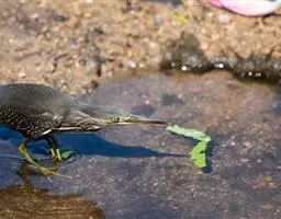 栗苇鳽的食物主要为小鱼、黄鳝、蛙、小螃蟹、水蜘蛛以及蝼蛄、龙虱幼虫和叶甲等昆虫。有时也吃少量植物性物质。