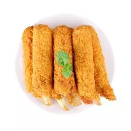 螃蟹腿卸下后,把外壳也敲破后摆于盘中。