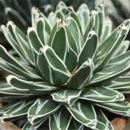 皇后龙舌兰是天门冬科、龙舌兰属多年生草本多浆植物。无主茎,叶丛生,莲座状,株幅40厘米。叶较多,…