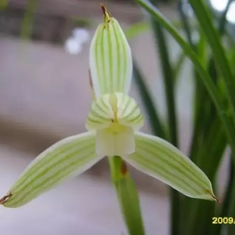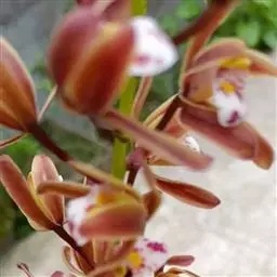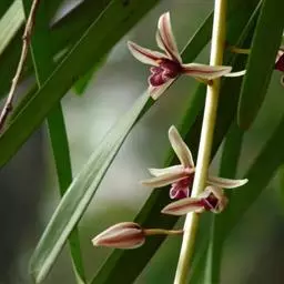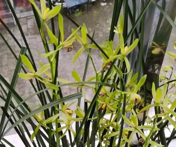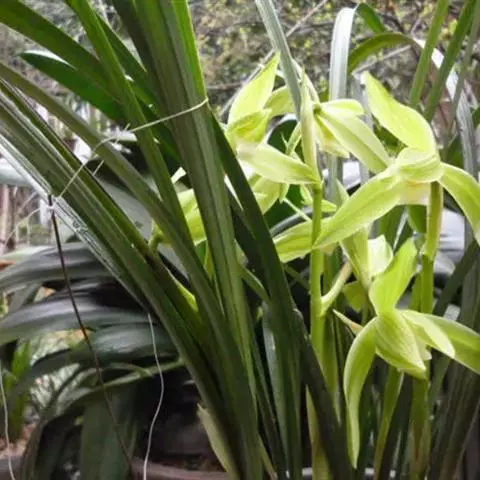 寒兰是兰科兰属的地生草本植物。茎为椭圆形;叶呈带状,尾部修长渐尖,叶脉较明显;每秆花枝开5-12朵,…