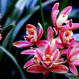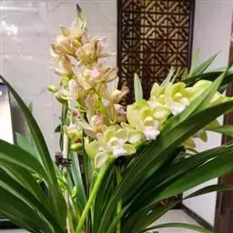 蕙兰(学名:Cymbidium faberi Rolfe):是兰科兰属的地生草本植物,假鳞茎不明显。叶5-8枚,带形,直立性强,叶脉透亮,边缘常有粗锯齿。花葶从叶丛基部最外面的叶腋抽出,总状花序具5-11朵或更多的花;花苞片线状披针形,最下面的1枚长于子房;花常为浅黄绿色,唇瓣有紫红色斑,有香气;花瓣与萼片相似,常略短而宽;唇瓣长圆状卵形,蕊柱稍向前弯曲,两侧有狭翅;花粉团4个,成2对,宽卵形。蒴果近狭椭圆形。花期3-5月。