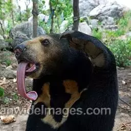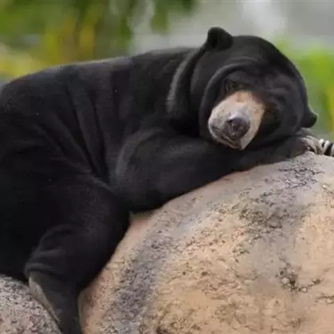 马来熊,是食肉目熊科马来熊属哺乳动物。体胖颈短,眼睛和耳朵小;头部短圆;全身乌黑光滑;鼻唇周为棕黄色,…