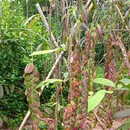 【德昂药】玉格热:功用同景颇族《德宏药录》。【景颇药】Myitbun nuq:根、藤、叶治咽喉肿痛,肝炎《德宏药录》。