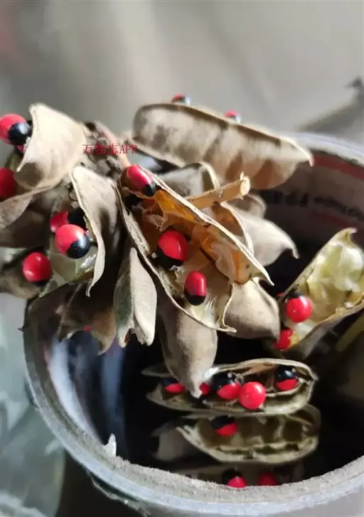 相思子的种子质地坚硬,色泽华美,红艳持久,可做装饰品,但有剧毒。