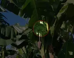 紫苞芭蕉形如一枝亭亭玉立、含苞待放的荷花,但却开在高高的芭蕉树上,这就是紫苞芭蕉。