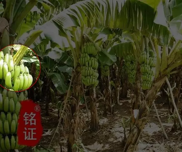 香蕉’),芭蕉科芭蕉属多年生草本植物,植株丛生,有匐匍茎;假茎浓绿有黑色斑点;叶片长圆形,…