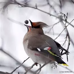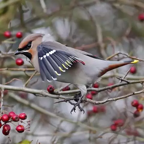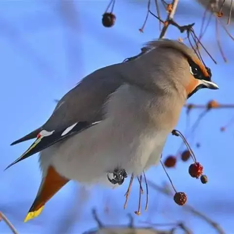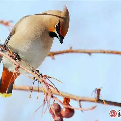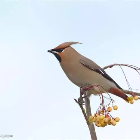 太平鸟属雀形目,太平鸟科的鸟类。太平鸟通体灰褐色,具羽冠;颏、喉黑色,尾羽先端黄色;虹膜暗红色;嘴…