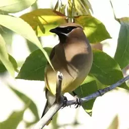 雪松太平鸟体形中等大小,体长约在19厘米左右。该物种雄雌同形同色,太平鸟成鸟额部及面部前端为栗色,…