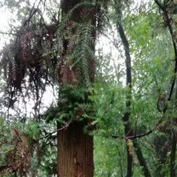 侧柏(Platycladus orientalis)受害后,树冠似火烧状的凋枯,病叶大批脱落,枝条枯死。在主干或枝干上萌发出一丛丛的小枝叶,所谓“树胡子”。连续数年受害引起全株枯死。